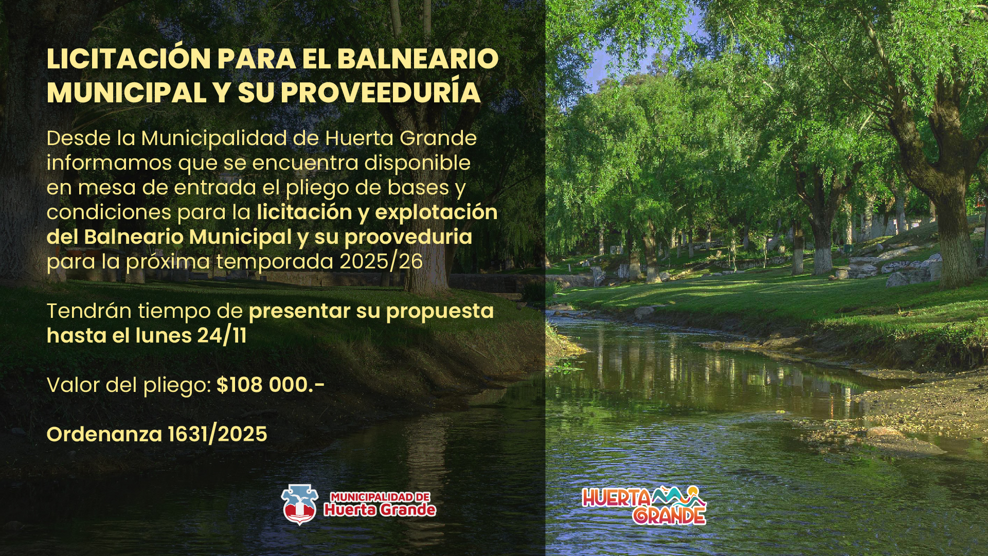 Comunidad | Se encuentra disponible en mesa de entrada el pliego de bases y condiciones para la licitación y explotación del Balneario Municipal.